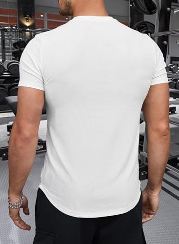Men's Muscle Shirt V Neck Slim Longline Short Sleeve Henley Shirt Gym Workout Athletic Tees Mens Tights for Sports 2