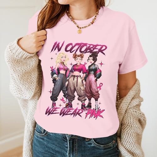 • Soft and Comfortable Cotton Material – Ideal for All-Day Wear: Our In October We Wear Pink Tshirt is made from soft cotton fabric that is incredibly soft and breathable. Designed to provide maximum comfort during the spooky season, this Halloween tee is ideal for showing support during Breast Cancer Awareness Month or rocking that Spooky Season Tee vibe with confidence.