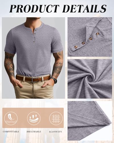 Ficerd 3 Pack Men's Henley T-Shirts Cotton Short Sleeve Casual Basic Tees Summer Loose Fit Oversized Solid Tops 7