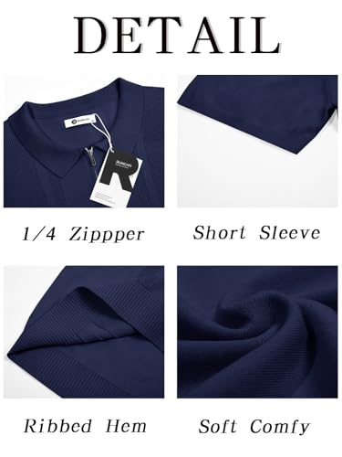 HOT ! Runcati Mens Knit Polo Shirts Quarter Zip Short Sleeve Textured Casual Golf Shirt Summer Stretchy Slim Fit Collared T Shirts