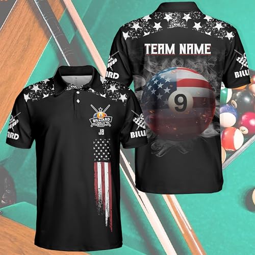 SHAANT Personalized Billiards Polo Shirt for Men, 9 Ball Pool Shirts, Custom Billiard Jerseys, Billiards Team Shirts 6