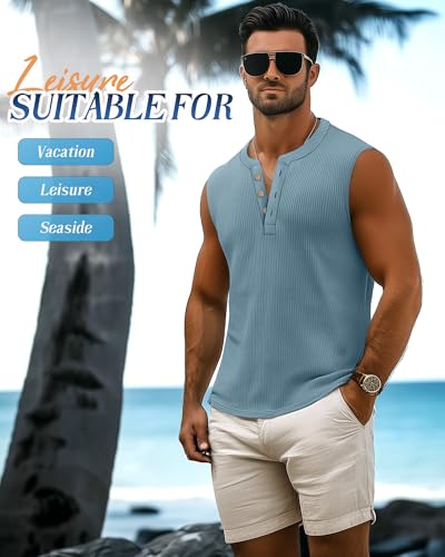 3 Pcs Men's Big and Tall Tank Top Ribbed Plus Size Sleeveless Henley Shirt Crewneck T Shirt 1X-5X 1