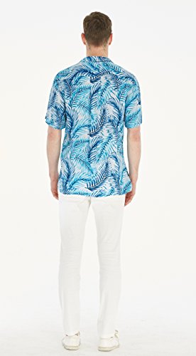 Matchable Couple Hawaiian Luau Shirt or Rahee Maxi Dress in Simply Blue Leaf 5