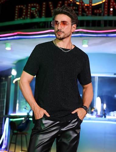 • Fabric: Shiny Sparkle T-Shirts for Men's Short Sleeves Metallic Glitter T-Shirt made of selected high grade quality, the material is stretchy and super soft to wear, with great moisture absorption and perspiration, no irritation to the tender skin, offers you a breathable and comfortable wearing experience