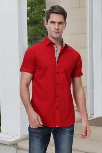 • STYLISH STYLE: Mens shirts short sleeve casual, button-down closure, solid color, regular fit, contrast collar, sleeve tap, fashion pocket. The curved hem and polka dot print spread collar give you a crisp, polished look. Our short sleeve shirt embraces both modern and traditional style to embody the confidence and coolness of men's fashion. Perfect for summer and hot weather