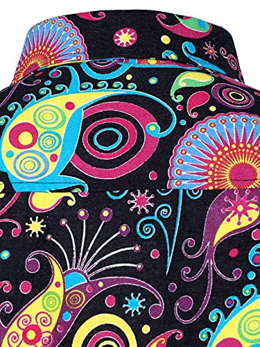 Men's Cotton Linen-Like 70s Disco Retro Traditional Pattern Printed Long Sleeve Button Down Shirt 6