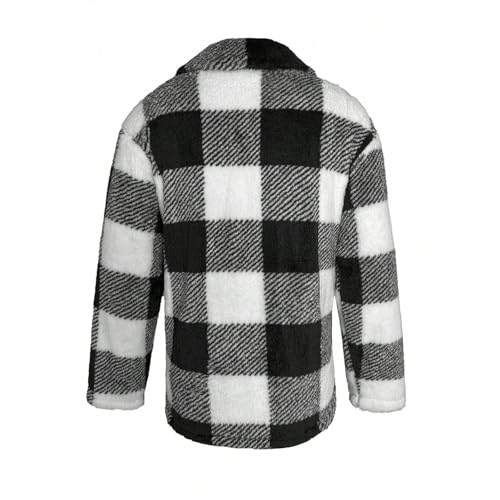 Mens Flannel Shirts Flip Collar Fleece Button Down Long Sleeve Plaid Shirt with Pockets Jackets Warm Winter Coat 6