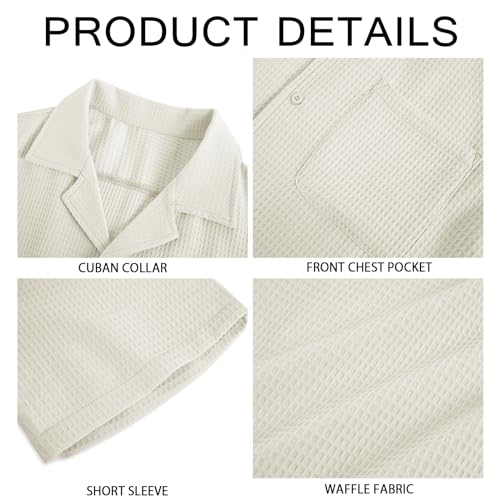 • 【Features】: The shirt features cuban collar, short sleeves, solid color, regular fit, unique waffle pattern and a practical design with chest pocket in line with the simple yet sophisticated design concept.