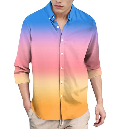 HOT ! Ymosrh Men's Shirts Long Sleeve Gradient Color Button Down Regular Fit Casual Beach Vacation Shirts, M-3XL