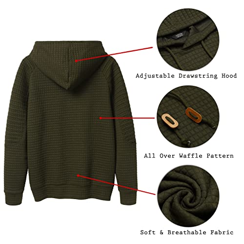 HOT ! COOFANDY Mens Hoodies Pullover Casaul Long Sleeve Drawstring Waffle Knit Hooded Sweatshirt with Kanga Pocket