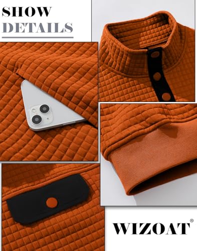 • STYLISH DESIGN: Men's pullover sweatshirt designed with stand collar, contrast on collar, snap button closure, chest real pocket and 2 side pockets. Pullover sweaters for men featured with 3D waffle pattern quilted design, more stylish and stereoscopic.