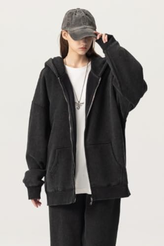 Womens and Mens Zip Up Oversized Hoodies Vintage Unisex Acid Wash Hoodie Y2K Jacket with Pockets for Streetwear 1