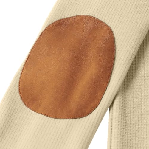 Mens Fall Fashion 2025 Button Down V Neck Hoodie Casual Waffle Sweatshirt Vintage Loose Pullover with Elbow Patches 6