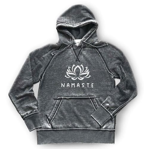 More information about Namaste Hoodie Yoga Sweatshirt Yogi Meditation Lotus Flower Fitness Health Burnout Soft Quality Comfortable Lightweight, Dark Grey (L, White-Matte)