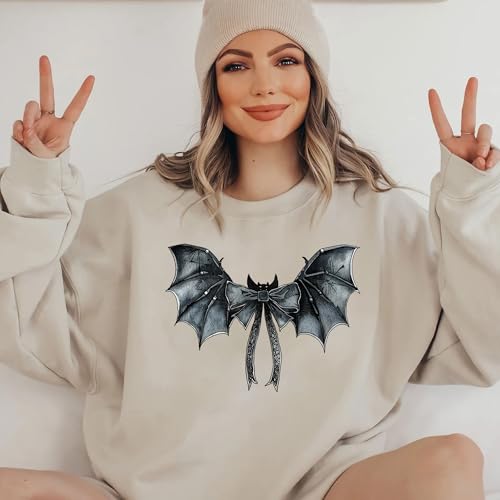 More information about Coquette Bat Sweatshirt, Gothic Halloween Sweatshirt, Spooky Coquette Trendy Shirt, Halloween Bat Sweatshirt