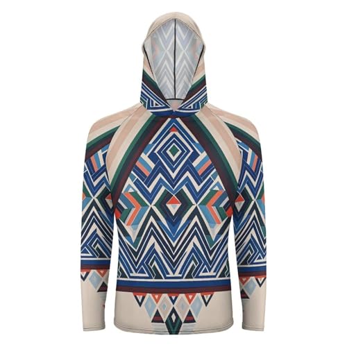 HOT ! Men's UPF 50+ Sun Protection Hoodie, Geometric Triangle Pattern Long Sleeve Pullover, Lightweight Quick-Dry UV Shirt