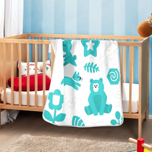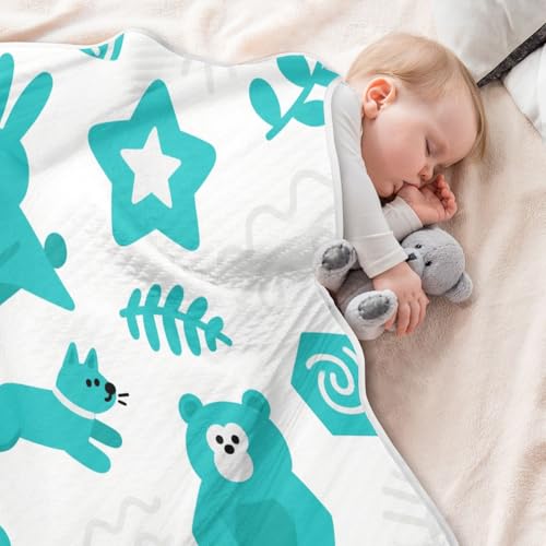 Custom Cute Turquoise Bear Rabbit Blankets for Kids Breathable Personalize Kitten Baby Name Blanket Personalized for Girls or Boys 30x40in Mantas para Bebes recien nacidos 6