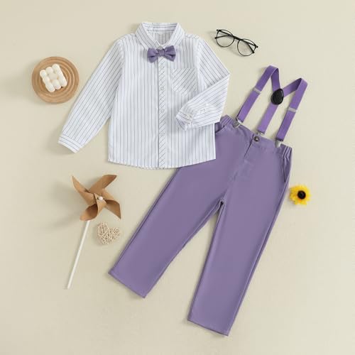 Kids Toddler Boy Gentleman Outfits Button Down Shirt Suspender Pant Wedding Formal Church Suit Dress Birthday Clothes 3