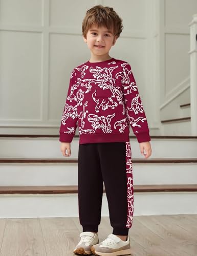 • Dinosaur print design: This boys clothes set consists of a dinosaur print long-sleeved top with sports trousers, the sports trousers are stretchy and come with an elastic waistband, making your boy more comfortable, he will surely love these prehistoric creatures and love this boy autumn and winter sportswear