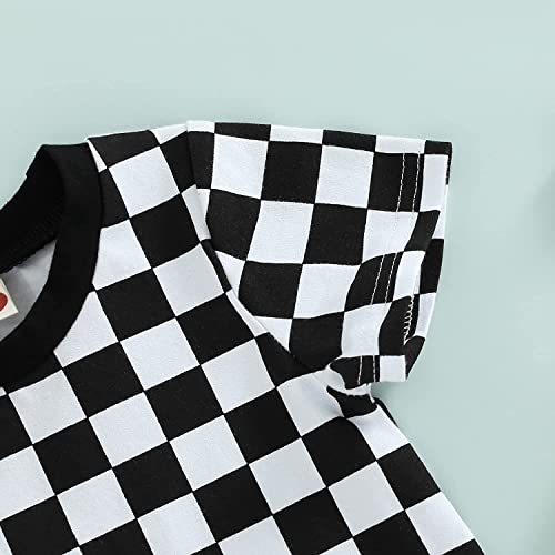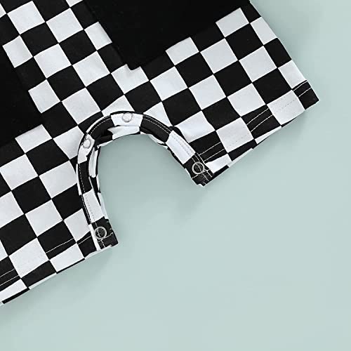 • 🏁DESIGN: Stylish Checkerboard printing round neck short sleeve pullover t shirt romper shorts jumpsuit oversized bodysuit,classic neutral color plaid, adorable and cute baby boy's clothing