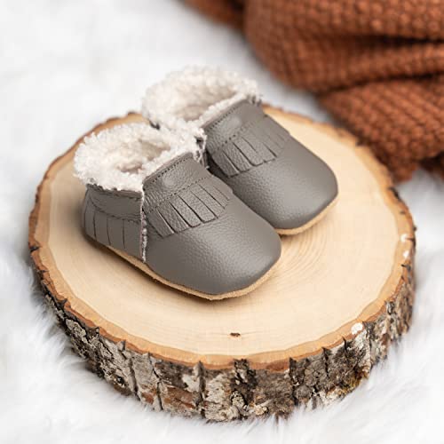 BirdRock Baby Sherpa Moccasins - Cozy, Genuine Leather Winter Shoes for Boys and Girls 6