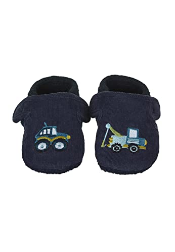 • Baby crawling shoe made of felt and cord with Velcro fastening, car embroidery and sewn on non-slip sole