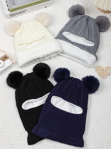 More information about Cooraby 4 Pack Kids Winter Hat Scarf Knitted Beanie with Neck Pompom Fleece Lined Earflap for Baby Toddler Girls Boys