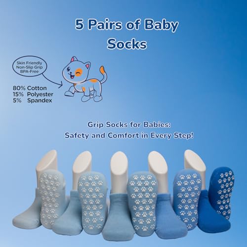 Safe Steps Baby Non-Slip Grip Socks – 5 & 9 Pack Cat Paw Cotton Sets for Boys, Girls, and Toddlers (6M–5Y) 1