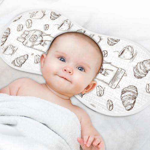 vvfelixl Muslin Burp Cloths Coffee Machine Croissant Baby Washcloths for Baby Girl Boys 2 Pack 6