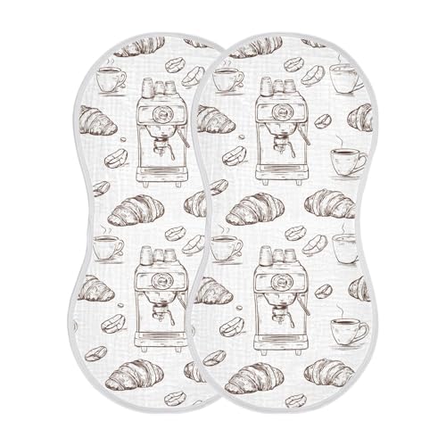 vvfelixl Muslin Burp Cloths Coffee Machine Croissant Baby Washcloths for Baby Girl Boys 2 Pack 2