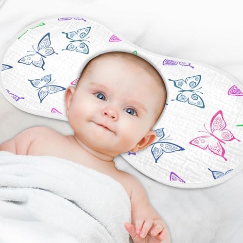Muslin Burp Cloth for Baby 4PCS Colorful Butterflies Super Absorbent Burping Cloths, Bibs for Newborn Boys Girls 6