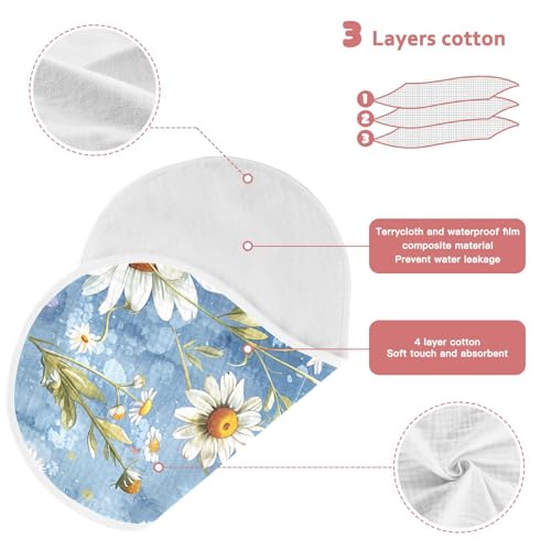 Wildflower Pattern Muslin Burp Cloths 22x11 Inch - 4-Layer Organic Cotton & TPU Waterproof Lining, Absorbent Baby Bibs for Boys/Girls with Hanging Loop 5