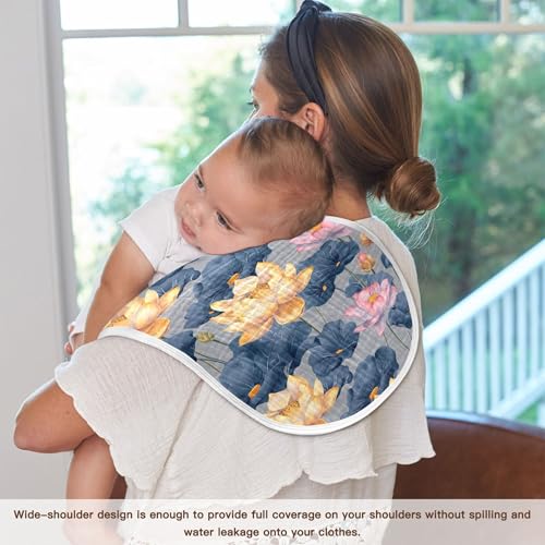 xigua Lotus Flowers Baby Burp Cloths for Newborn Boys and Girls 4 Pack, Soft & Absorbent Cotton Baby Burp Cloth, Baby Washcloths, Newborn Towel, Burp Rags 3
