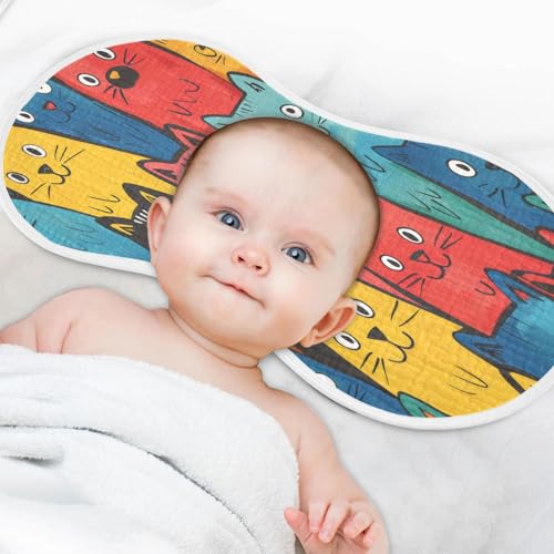 HOT ! 1 Pack Comic Cats Colorful Muslin Burp Cloths Cotton Absorbent Baby Burping Rags for Boys Girls Soft Newborn Burp Bibs, 22 x 11 Inch