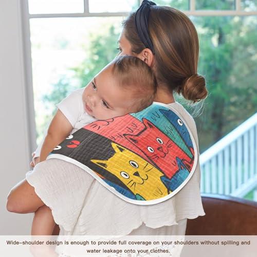 1 Pack Comic Cats Colorful Muslin Burp Cloths Cotton Absorbent Baby Burping Rags for Boys Girls Soft Newborn Burp Bibs, 22 x 11 Inch 5