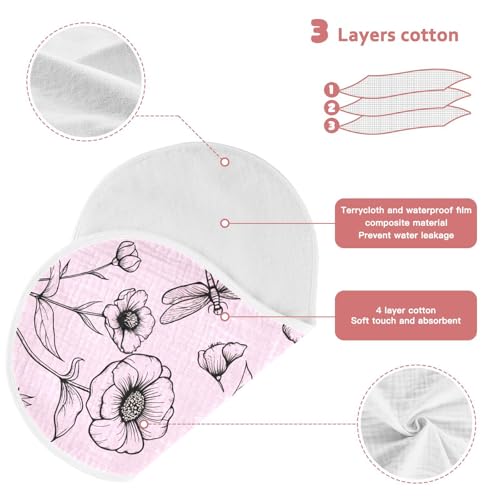 Flowers Butterflies Pink Burp Cloths for Babies Burp Rag Cotton Spit Up Rag for Babies Infant Newborn 4