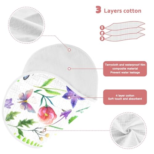 Floral Butterfiles White Burp Cloths for Babies Burp Rag Cotton Spit Up Rag for Babies Newborn 4