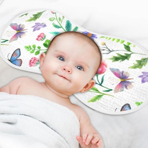 Floral Butterfiles White Burp Cloths for Babies Burp Rag Cotton Spit Up Rag for Babies Newborn 6