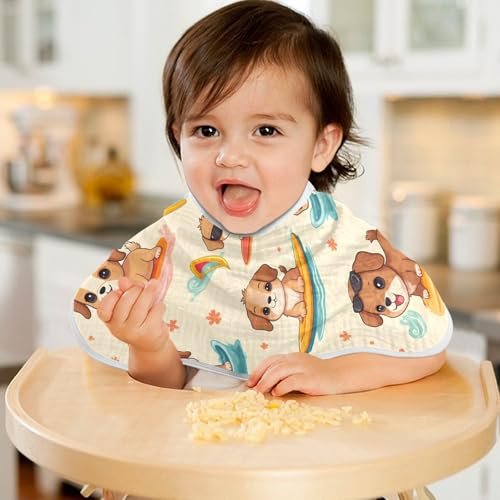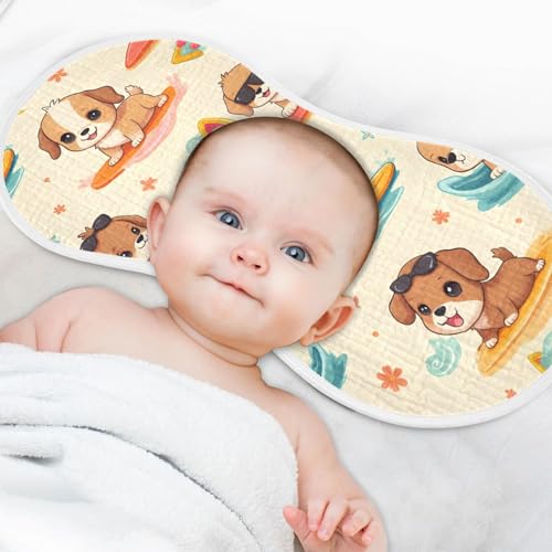 Bolaz Baby Burp Cloths 2 Pack,Surfboard Dog Pattern,Feeding Cloths Face Towel Super Absorbent Soft Cotton Burping Rags Feeding Bibs 6