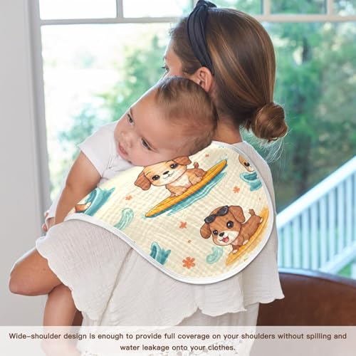 Bolaz Baby Burp Cloths 2 Pack,Surfboard Dog Pattern,Feeding Cloths Face Towel Super Absorbent Soft Cotton Burping Rags Feeding Bibs 5