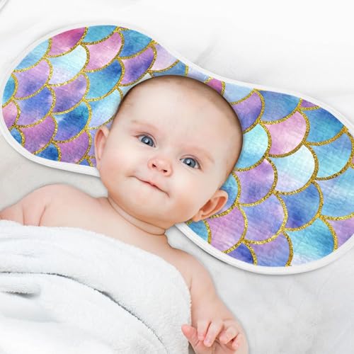 xigua Scallop Scales Baby Burp Cloths for Newborn Boys and Girls 2 Pack, Soft & Absorbent Cotton Baby Burp Cloth, Baby Washcloths, Newborn Towel, Burp Rags 2