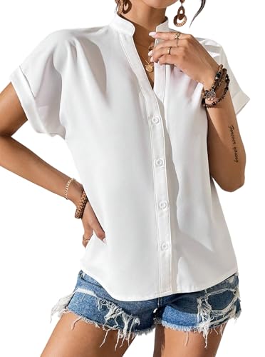 • Features: Women short sleeve tops feature with short sleeve, button down blouse, v neck design, cute business top