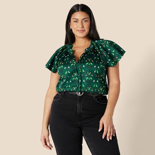 HOT ! Amazon Essentials Women's Relaxed-Fit Cotton Sateen Flutter Sleeve Blouse