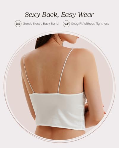 Women's Real Mulberry Silk Satin Bralette Camisole - Wireless Bra Crop Top, V-Neck Spaghetti Strap Tank Top 3