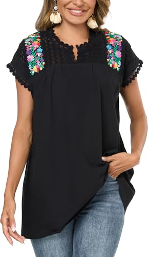 • Cute Design: Delicate and beautiful lace and vibrant embroidery make this mexican shirts for women a stylish choice for all women who love bohemian style. It is the perfect cute loose casual top for summer.