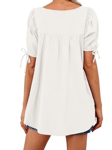 Tankaneo Womens Square Neck Babydoll Tops Summer Puff Short Sleeve Tunic Shirts Casual Loose Fit Blouse 2