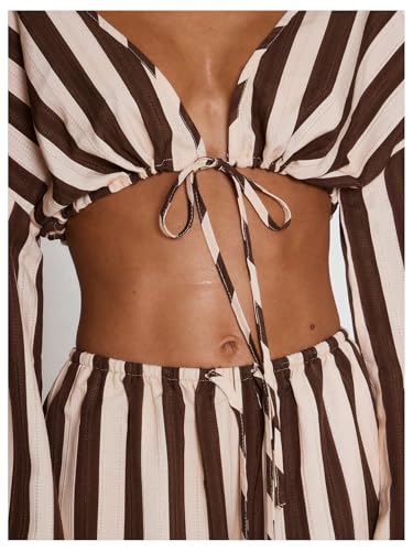 HOT ! Milumia Women's Striped Tie Front Long Sleeve Crop Tops V Neck Beach Going Out Top