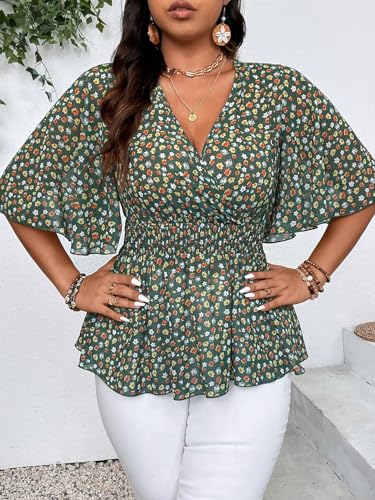 SOLY HUX Women's Plus Size V Neck Blouses Floral Print Flowy Peplum Tops Summer Ruffle Chiffon Shirts 3