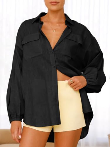 More information about Cicy Bell Womens Oversized Button Down Shirts Puff Long Sleeve Collared V Neck Cotton Blouses Linen Loose Fit Tops