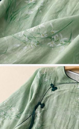 • CHINESE TRADITIONAL HANFU FEATURES: 3/4 sleeves, Round neck top, Chinese frog button blouse, casual loose linen shirt for women, floral print tunic tops for women.